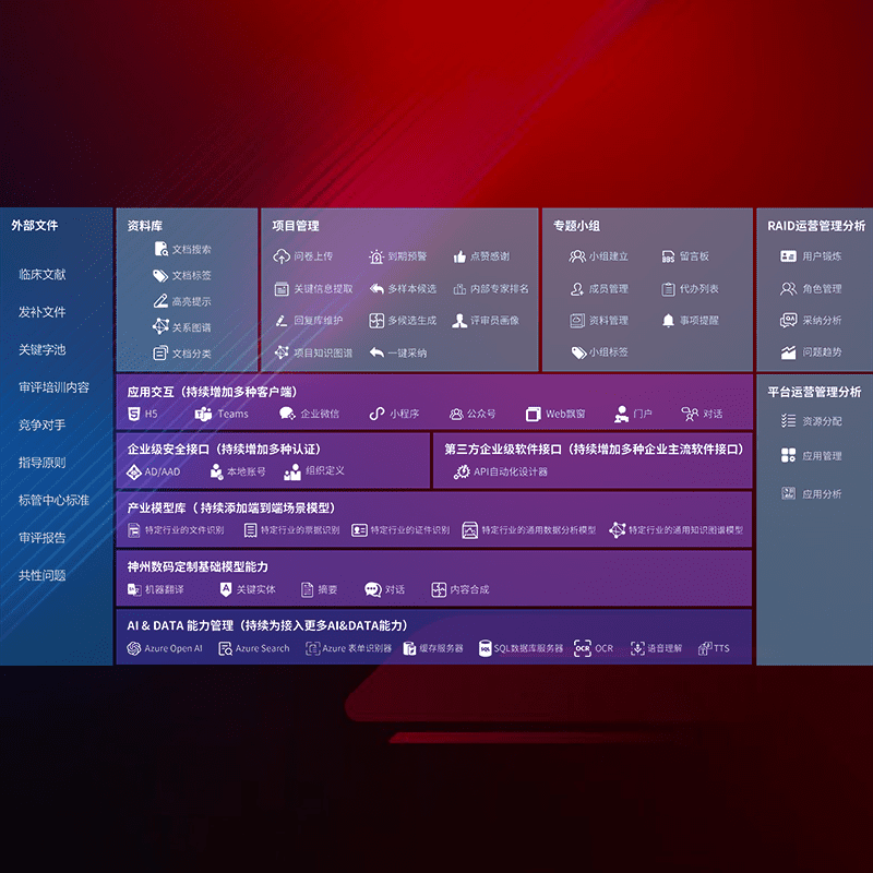 医疗器械产品上市前,,要熟悉严格与繁复评审标准,,,,整理分析监管机构指导文件中的海量信息。。。企业急需一个智能化解决方案,,,,提升知识管理效率,,,,提高评审通过率,,,,以提升其市场竞争力。。。